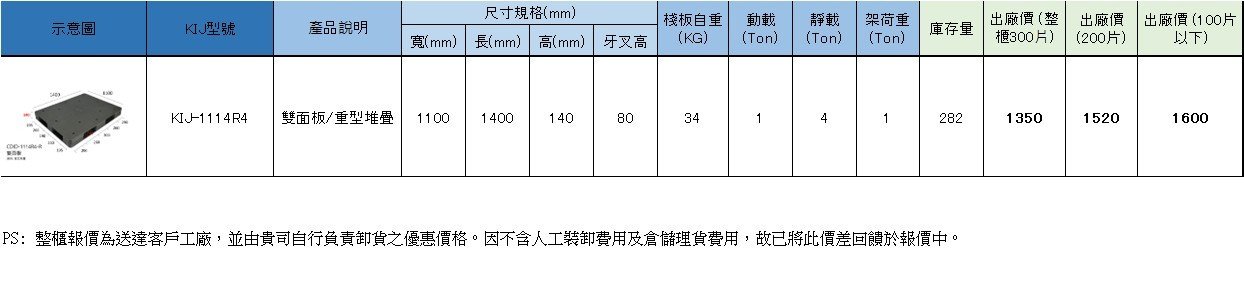 KIJ-1114R4 採用的 雙面密面 (Double Deck) 結構,是重型堆疊作業的救星: