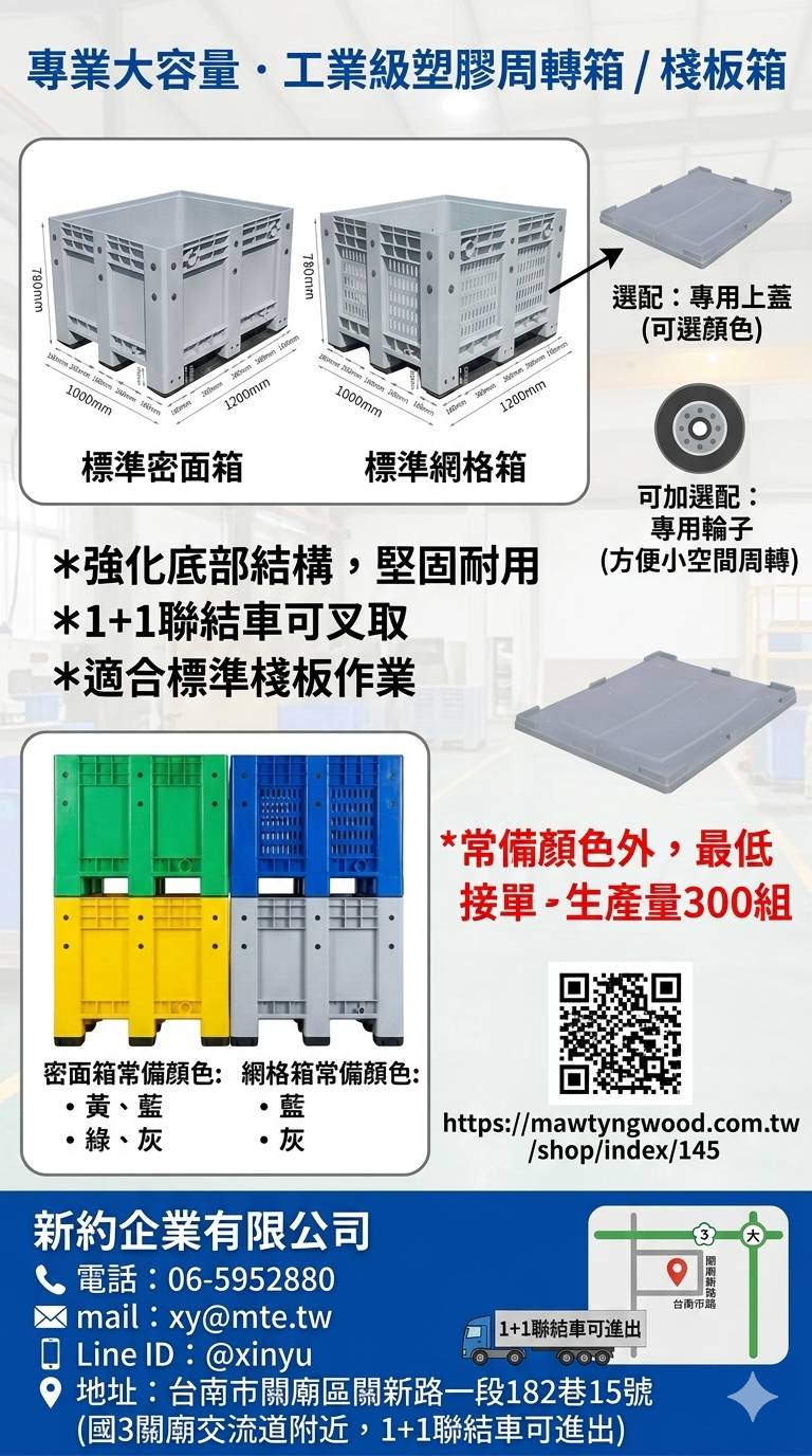 🔗 查看更多 1200x1000 標準固定式塑膠箱細節: https://mawtyngwood.com.tw/shop/index/145