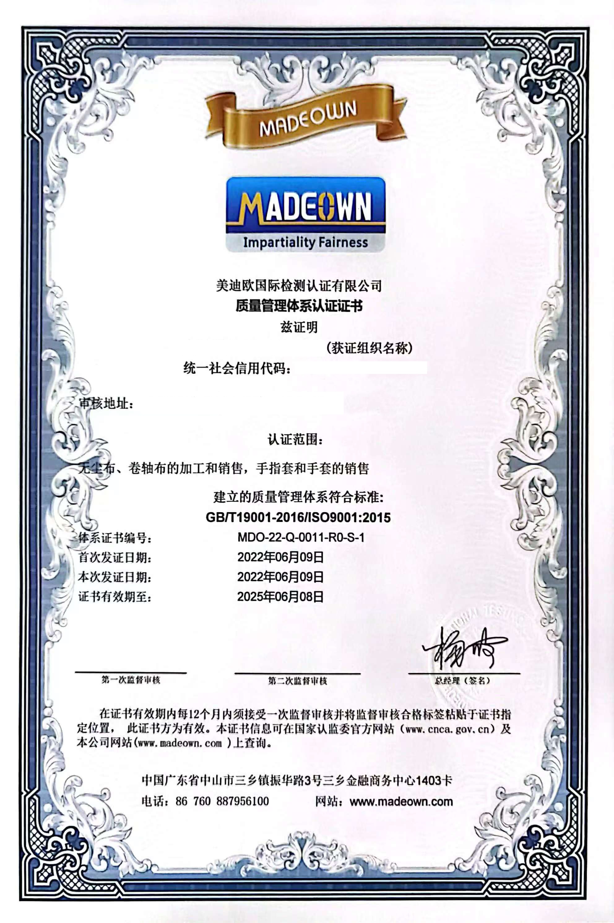 ISO 9001:2015 品質管理系統 ( 點擊查看證書內容 )