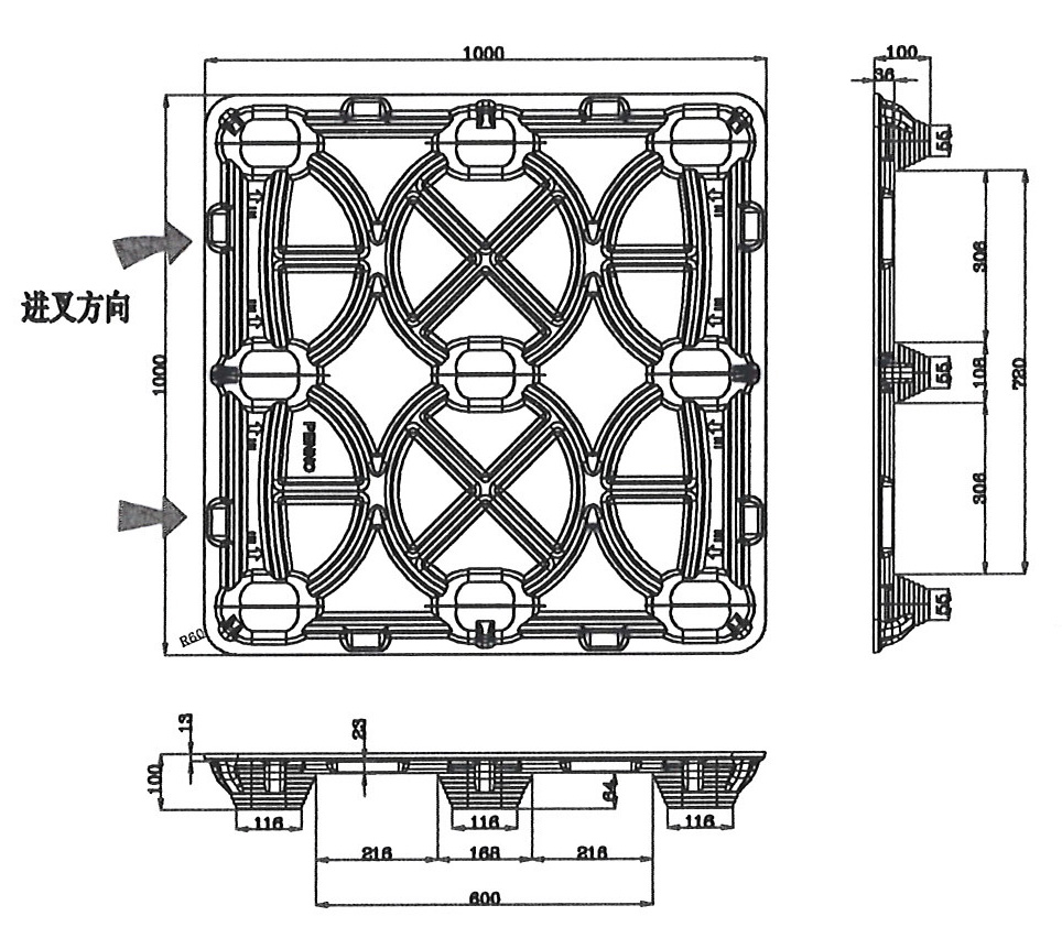 | V-S4-100100-64 | 1000*1000*100 | 2200 | 7500 | 62PCS | 1364pcs | 15±1 | 四叉口 | 四向 | O |