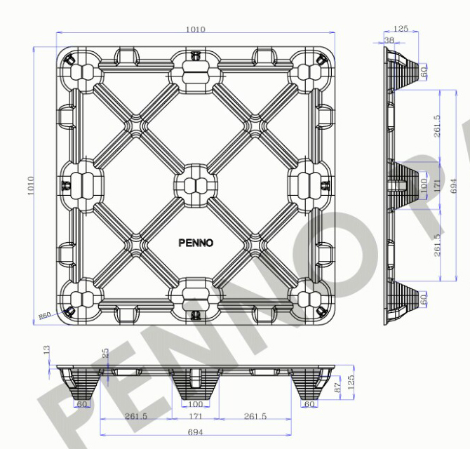 | V-FT4-101101-87 | 1010*1010*125 | 2000 | 7000 | 68pcs | 1496pcs | 15±1.0 | 四叉口 | 四向 | O |