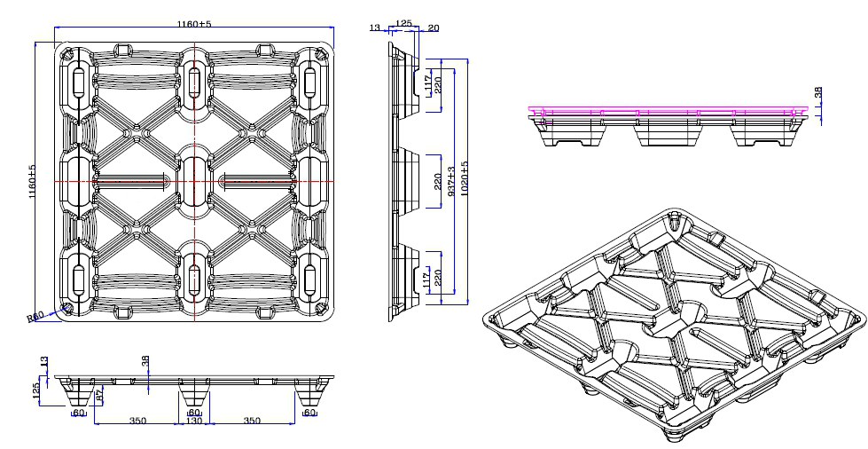 | V-S2-116116-87 | 1160*1160*125 | 2000 | 7000 | 60PCS | 600pcs | 20±1 | 四叉口 | 四向 | O |