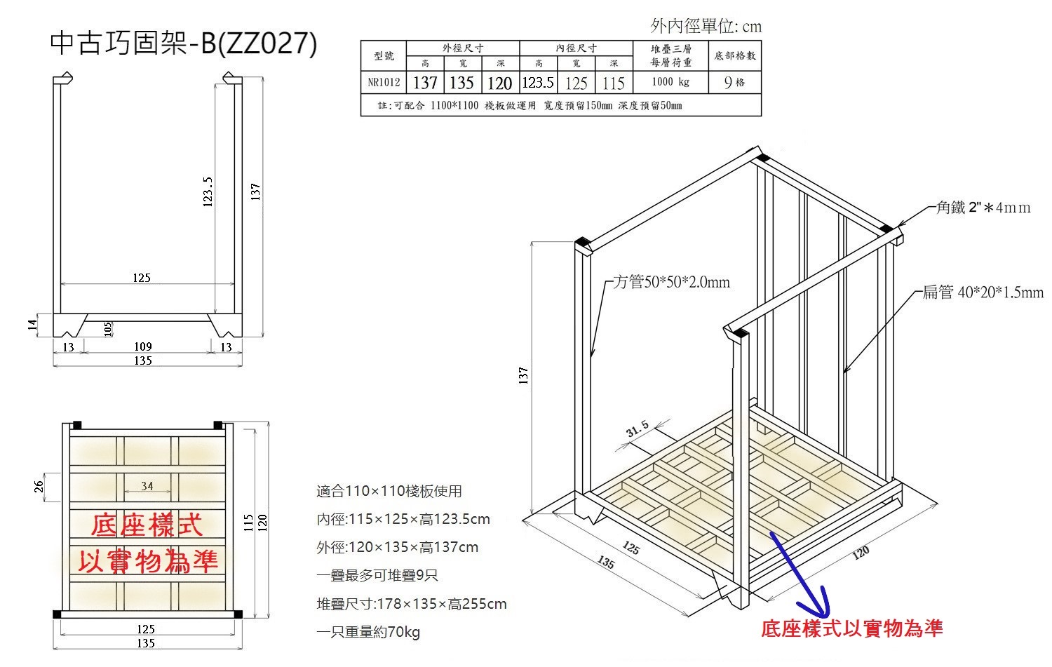 適合110×110棧板使用