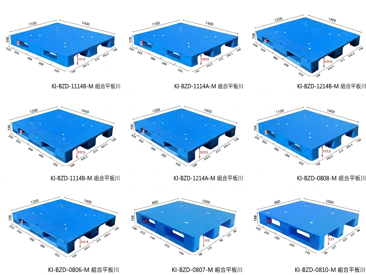 在工業物流的實務操作中,尋找 150×150cm 以上的大規格塑膠棧板已經不容易,而最讓採購與倉管頭痛的,莫過於這些大棧板通常被設計為(雙面型或田字型),導致一般的油壓拖板車與部分特殊機型堆高機完全無法進入操作。新約 / 茂庭企業 突破市場限制,此系列共76項尺寸(持續增加中)提供從超大規格 150×150cm、150×130cm 到最小規格 60×80cm 的全尺寸解決方案,並堅持採用 「川字型」結構,讓您的搬運設備不再受限。