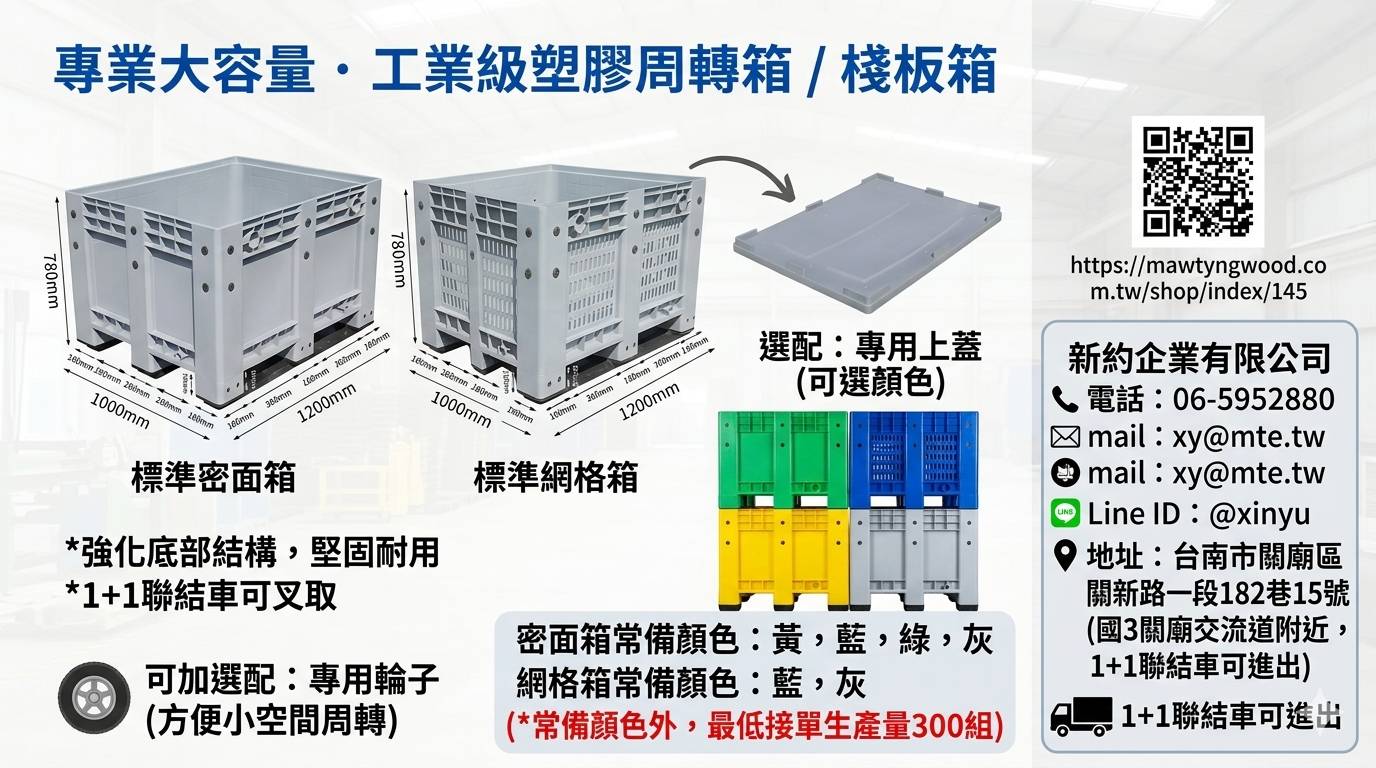 🔗 查看更多 1200x1000 標準固定式塑膠箱細節: https://mawtyngwood.com.tw/shop/index/145