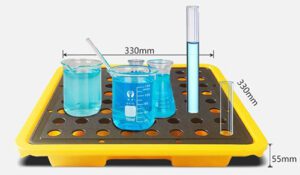 小防漏棧板產品使用範圍大致說明:桌面或實驗室防滲漏使用,可四向拼接(無限擴充)依容器大小調整適用尺寸範圍,適用於各工廠或學校,醫院,藥廠,化學公司……等等實驗室小桶需防漏防護使用之地點