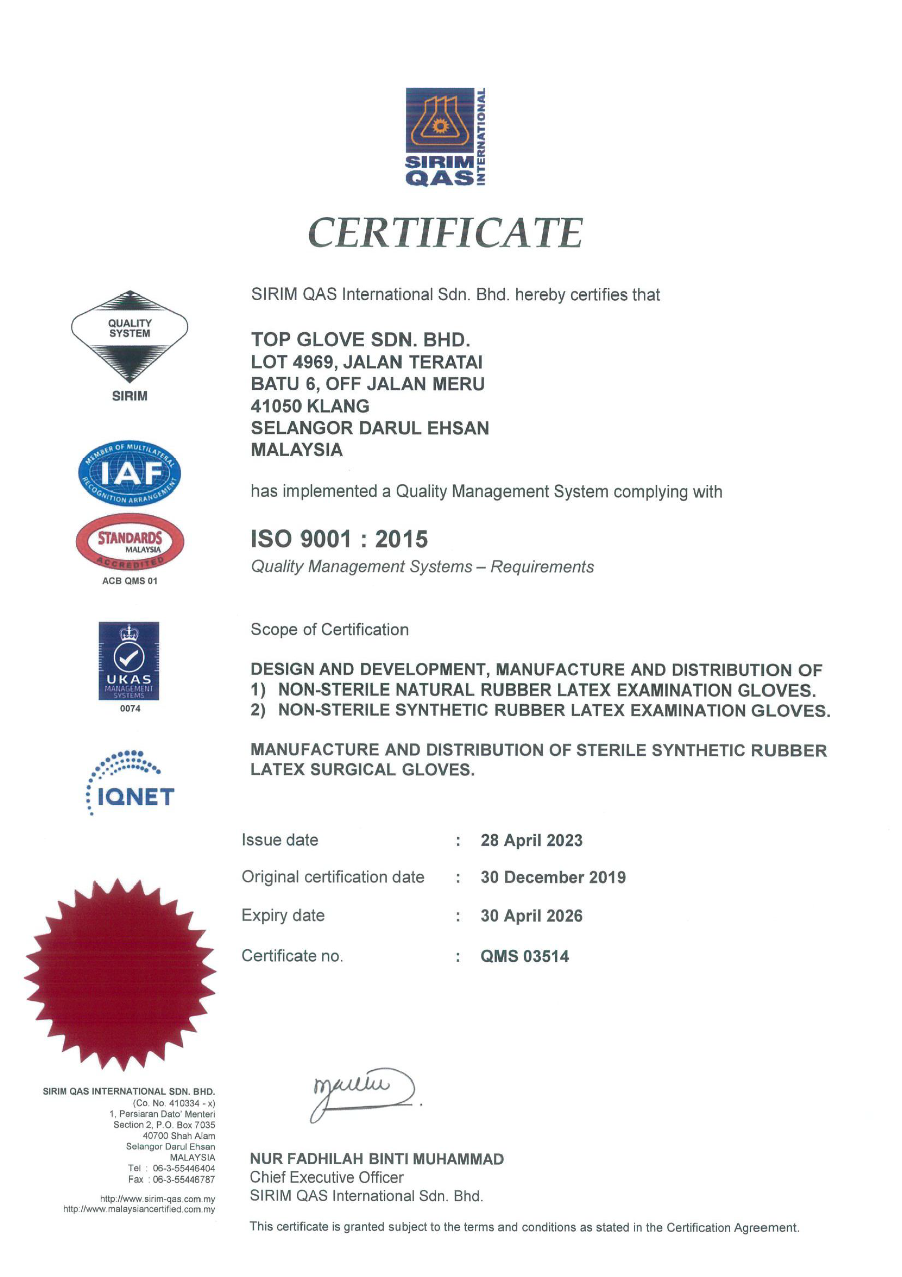 ISO 9001:2015 品質管理系統 ( 點擊查看證書內容 )