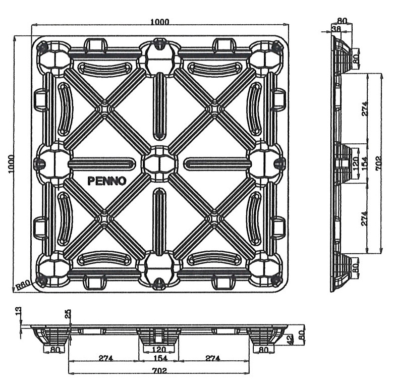 | V-F4-100100-42 | 1000*1000*80 | 2200 | 7500 | 62pcs | 1364pcs | 15±1 | 四叉口 | 四向 | O |