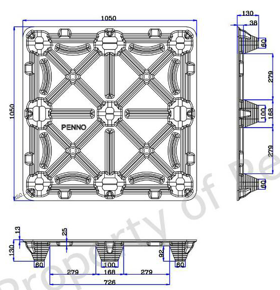 | V-F4-105105-92 | 1050*1050*130 | 2000 | 7500 | 66PCS | 1452pcs | 16±1 | 四叉口 | 四向 | O |