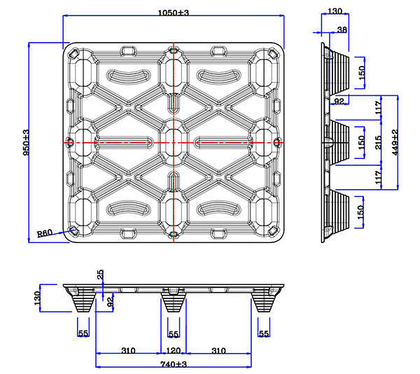 | V-S2-105095-92 | 1050*950*130 | 2000 | 7000 | 65PCS | 1560pcs | 15±1 | 四叉口 | 四向 | O |