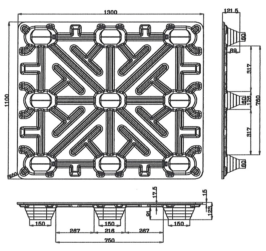 | V-S4-130110-91 | 1300*1100*123 | 2000 | 7500 | 60PCS | 1080pcs | 20±1 | 四叉口 | 四向 | O |