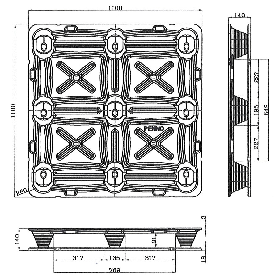 | V-SD4-110110-91 | 1100*1100*140 | 2600 | 8600 | 704組 | 29±1 | 四叉口 | 四向 | O |