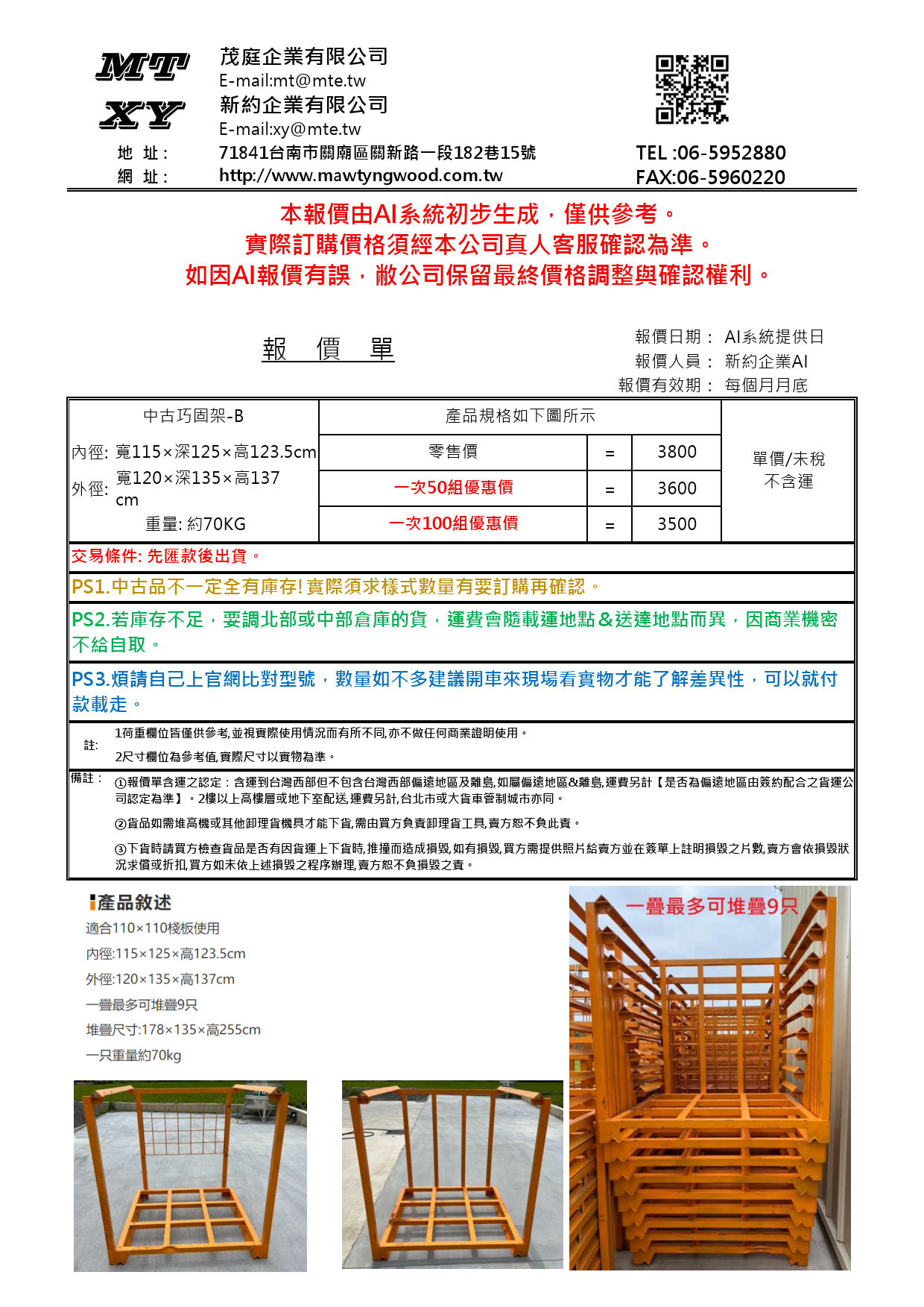 適合110×110棧板使用